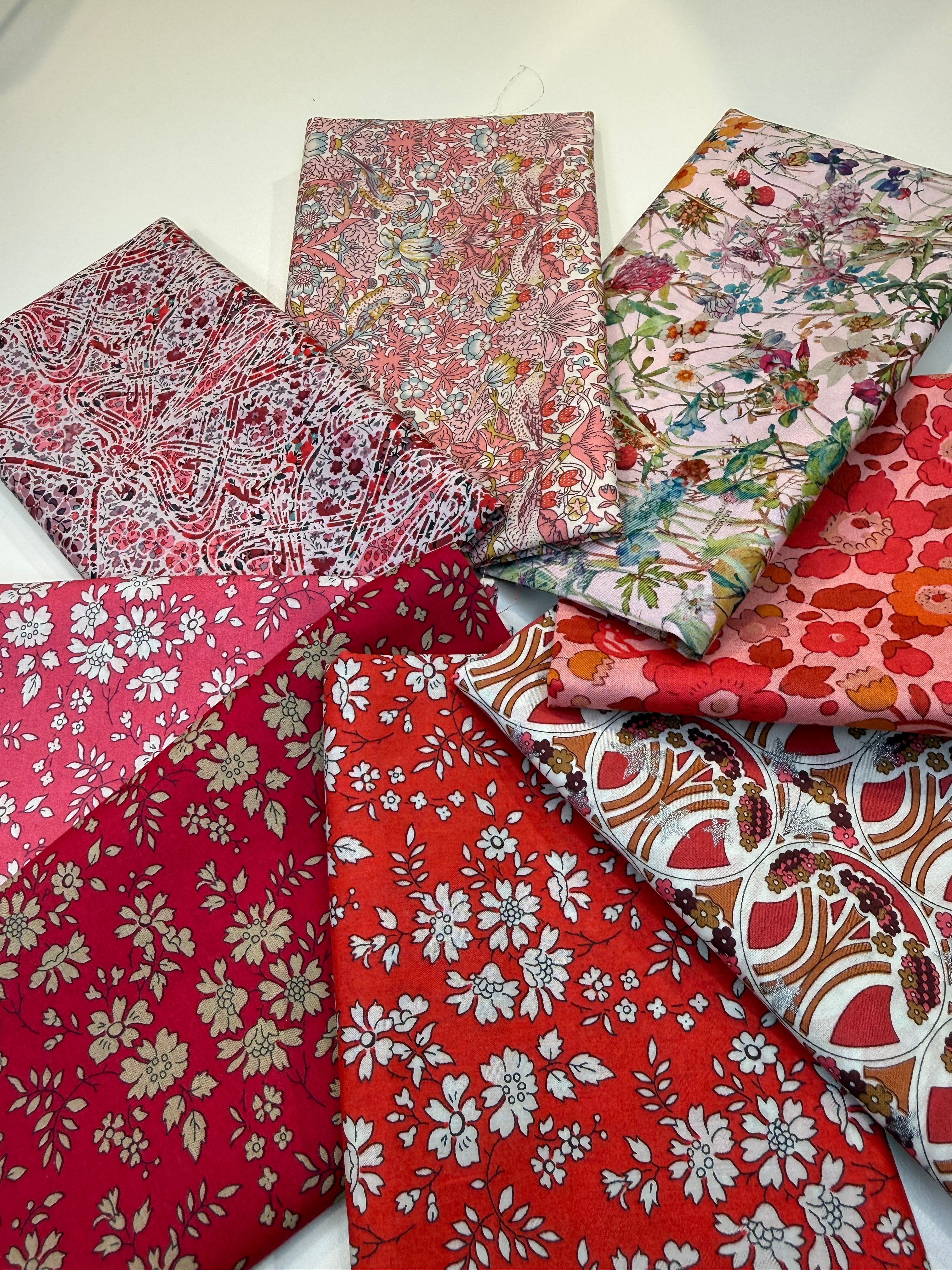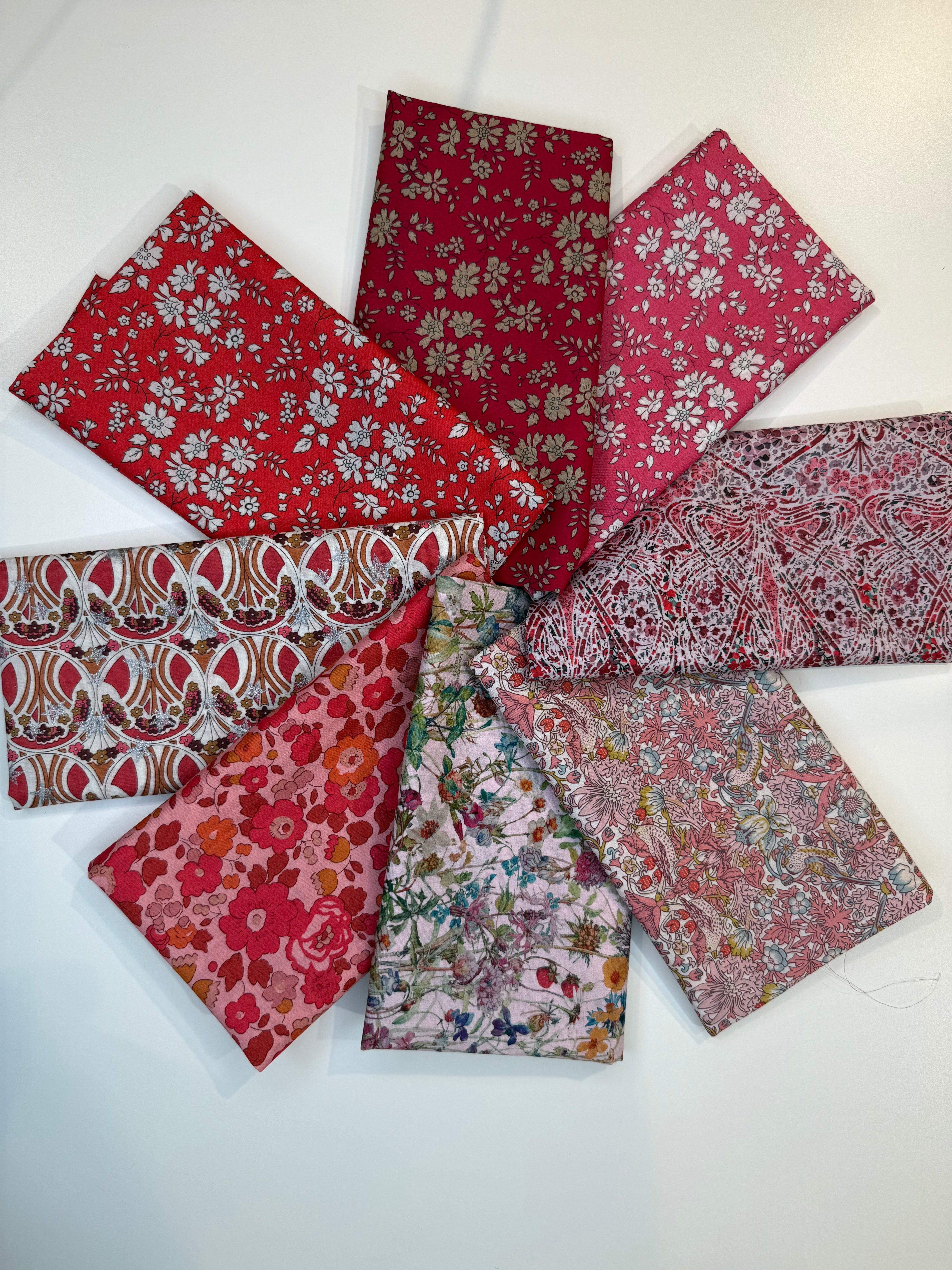 8 forskellige Liberty Tana Lawn® stoffer, der hver er 25 cm x 68 cm