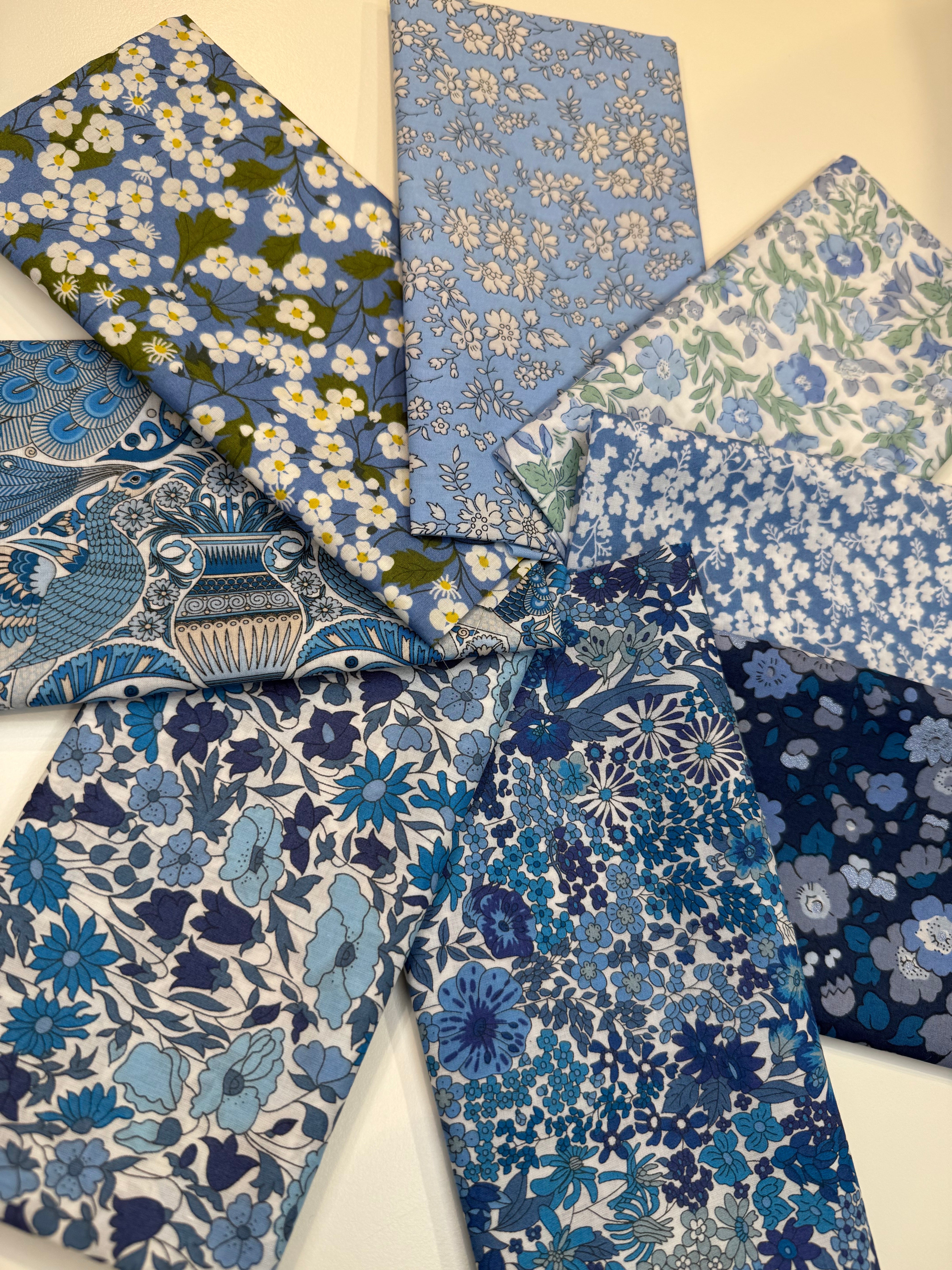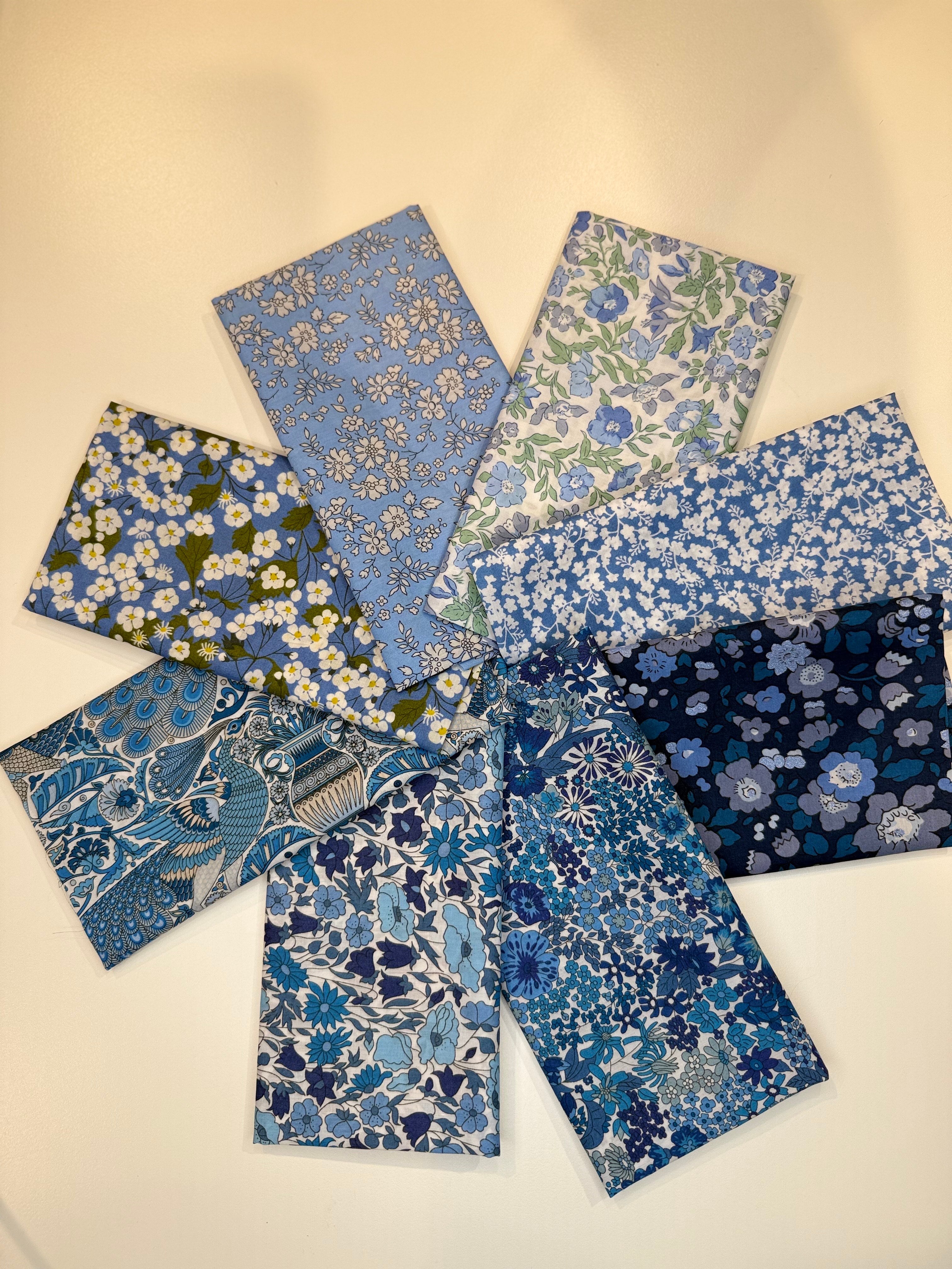 8 forskellige Liberty Tana Lawn® stoffer, der hver er 25 cm x 68 cm